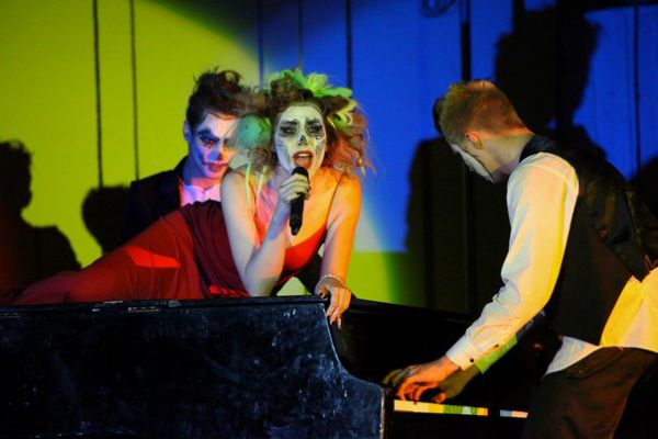 Но СВАДЬБИЩЕ – это не только танец, это яркое, запоминающееся зрелище необычного формата. В напряженном ритме, не давая вниманию зрителя ни единого шанса ускользнуть, экспрессивные танцевальные номера перемежаются качественным вокалом, цирковой эксцентрикой, театрализованными мизансценами. И все это – общий фантастический мир, наполненный странными конструкциями, ассиметрией, уходящими в никуда лестницами. И населенный странными не то людьми, не то призраками, с дикими прическами и грустными глазами, в которых, как ни странно, живет ранимая, неуверенная душа…